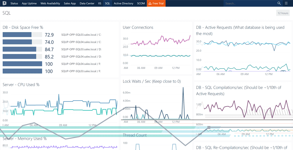 SquaredUp opens all of this data up to you and your users with fast, interactive HTML5 access and features a number of different Dashboard Tiles that you can use to display performance metrics, including; line graphs, sparklines, Top N bar graphs and Heatmaps.